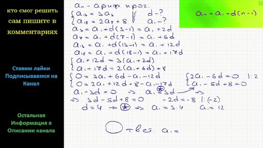 Математика При делении тринадцатого члена арифметической прогрессии на третий член в частном получается 3 а при делении восемнадцатого члена
