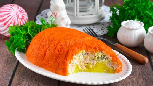 Салат Морковка с копченой курицей на Новый 2023 Год. Салаты на новый год. Новогодние салаты.
