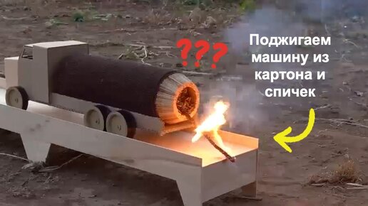 Эксперимент, что будет если склеить 30000 спичек и засыпать их в грузовик собранный из картона, будет много огня и шума.