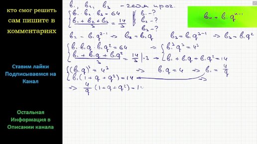 Математика Найти три числа, образующих геометрическую прогрессию, если известно, что их произведение равно 64, а их среднее арифметическое