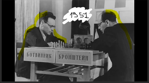 Давид Бронштейн черными поэтично играет черными против талантливого Михаила Ботвинника (партия №17 матча 1951 года за 👑 в Москве)