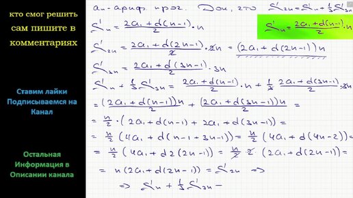 Математика Показать, что для всякой арифметической прогрессии при любом n выполняется равенство S2n = Sn + 1/3 S3n