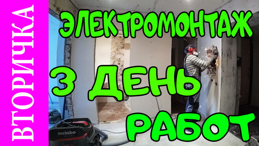 Вторичка. Замена электропроводки. 3 день работ, прокладка кабеле, установка щита.