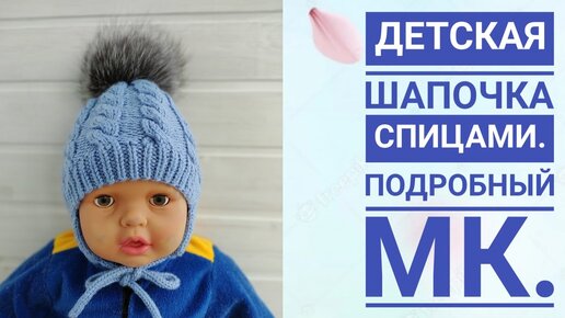 Простая детская шапочка с ушками спицами.Подробный мастер класс.
