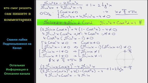 Математика Решите уравнение (Sin^2 2x - 4Sin^2 x)/(Sin^2 2x + 4Sin^2 x - 4)+1=2tg^2 x