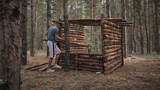Построил укрытие в сосновом лесу, 3 дня в дикой природе, приготовление пищи на природе.