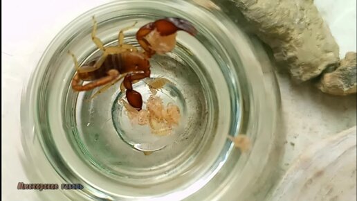 Мама скорпион с десятком своих маленьких детёнышей 🍎
