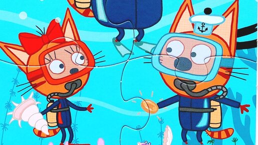 ТРИ КОТА - Коржик Компот и Карамелька плавают - собираем пазлы для детей из мультика Три кота