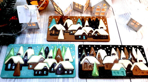 Шоколад ручной работы РОЖДЕСТВЕНСКАЯ ДЕРЕВНЯ 🏘🎄. Шоколад с фантазией ❄🌲Handmade chocolate