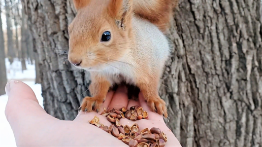 Кормлю трёх белок. Длинноухого, Рыжую и Того Самого бельчонка