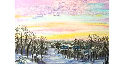 Разноцветное зимнее небо. Как нарисовать зимний пейзаж сухой пастелью.