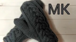 МК Варежки с красивой косой спицами.
