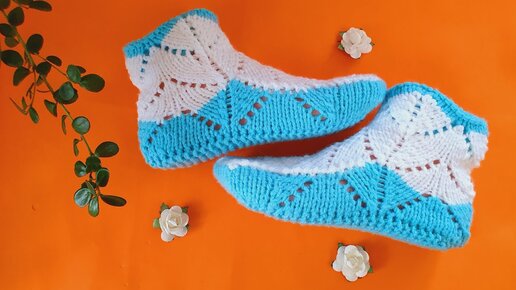 🔥Ещё одни Праздничные носки спицами. Без шва на подошве. 👍🎄