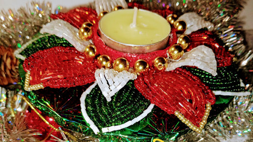 Как сделать красивый цветочный подсвечник из бисера. Легко и просто своими руками .Подарки поделки к празднику св. Валентина!
