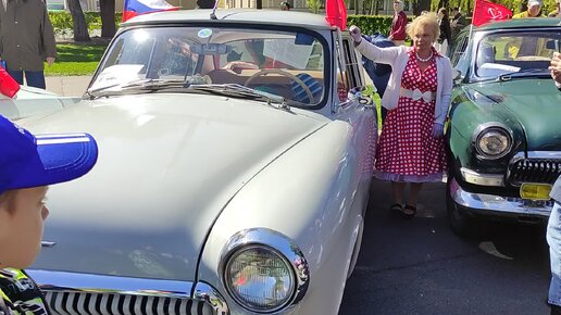 Ну как не посидеть за рулём выдающегося советского автомобиля "Волга" ГАЗ-21... А у её хозяйки платье в горошек, всё как положено!))