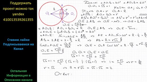 Математика Общая хорда двух пересекающихся окружностей видна из их центров под углами 90 и 60 Найти радиусы окружностей если расстояние