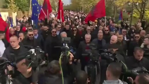 На акции протеста в Албании неизвестный ударил кулаком по лицу бывшего президента