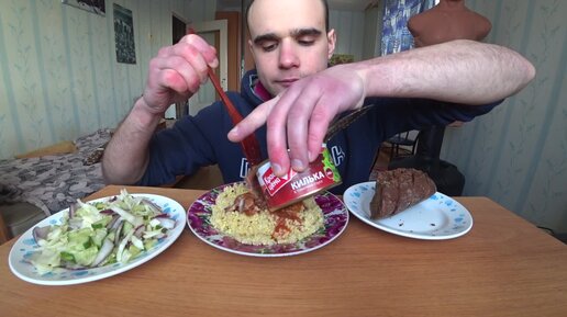 МУКБАНГ/АСМР КИЛЬКА В ТОМАТЕ/ КАША ПШЕННАЯ/САЛАТ ОВОЩНОЙ/БАГЕТ ЧЕСНОЧНЫЙ/УЖИН/EATING/ASMR/Mukbang#379