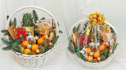 🎄Новогодняя Подарочная Продуктовая Корзина МАСТЕР-КЛАСС🎄 Подарок на Новый Год🎄 Как обернуть пленкой