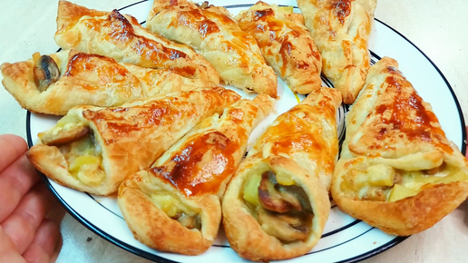Кулечки с грибами из слоеного теста