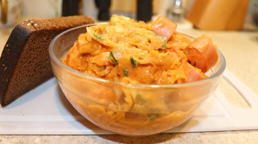 Вкусненная капуста с сосисками на сковороде! Съели и просили добавки!