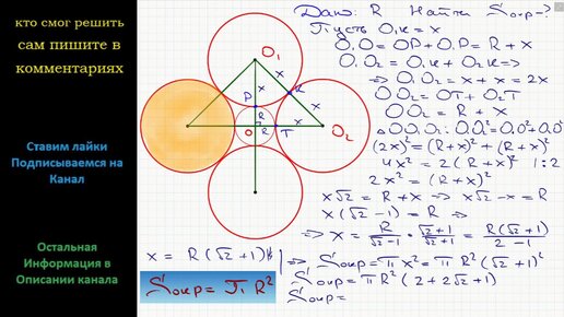 Математика Круг радиуса R обложен четырьмя равными кругами, касающимися данного так что каждые два соседних из этих четырех кругов касаются