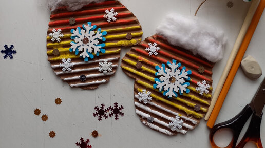 Новогодняя игрушка "Варежки". Делаем поделку с детьми к Новому году