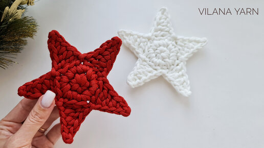 Звезда вязаная крючком. Новогодний декор. Игрушка на елку крючком.