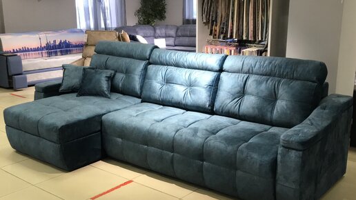 Большой угловой диван с оттоманкой, ящиком для белья и механизмом тик-так