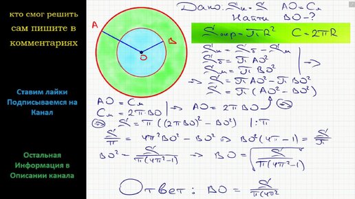 Математика Площадь кругового кольца равна S. Радиус большей окружности равен длине меньшей окружности. Определить радиус последней