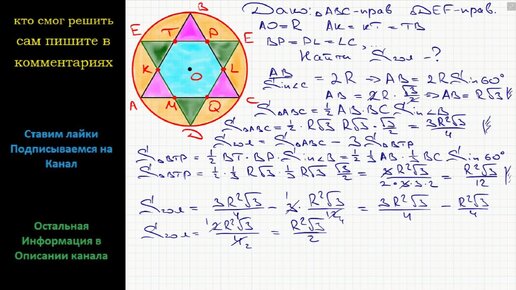 Математика В круг радиуса R вписаны два правильных треугольника так что при их взаимном пересечении каждая из сторон разделилась на три