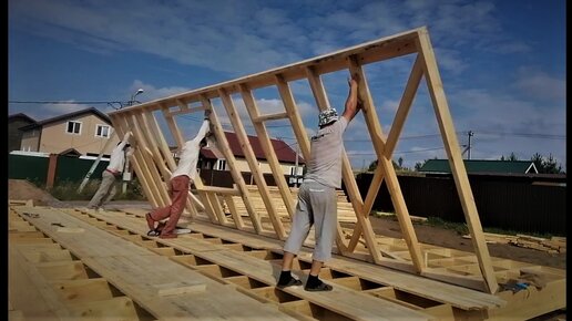 Монтаж и Сборка Каркасных стен по Длинным Сторонам Дома