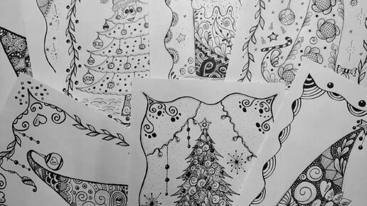 Zen арт. Скетчи. Дудл. Рисунки. Дудлинг. Простые рисунки. Как нарисовать елочку. Рисунок линером. Новогодние рисунки.!!!
