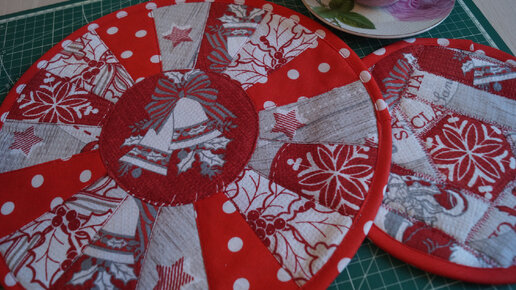 КРУГЛАЯ САЛФЕТКА ДЛЯ НОВОГОДНЕГО СТОЛА / ШЬЮ ИЗ ЛОСКУТКОВ ПО БУМАГЕ