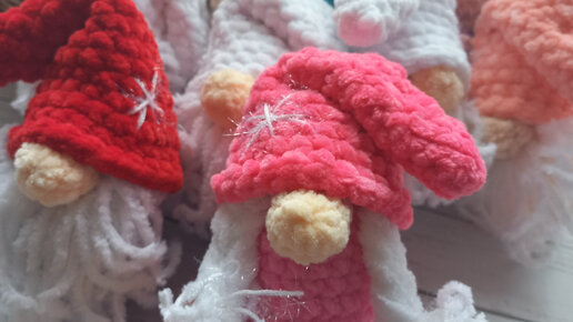 Новогодний Гном (Гнома) крючком из плюшевой пряжи 1 часть