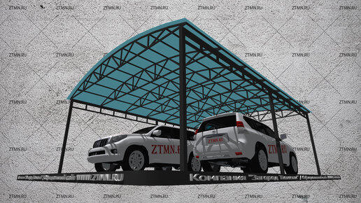 Видео эскизного проекта навеса из поликарбоната размером 5,7 на 8 метров.