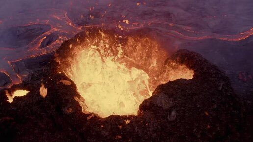 Извержение вулкана в Исландии - съемка с дрона (дух захватывает)