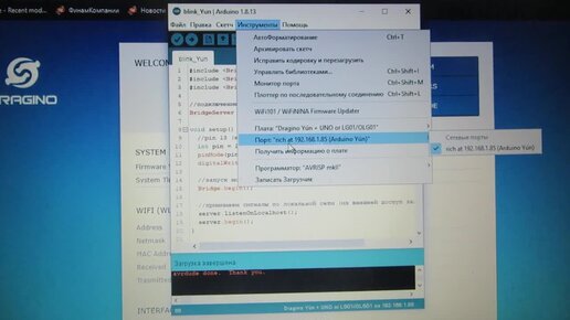 Мигание светодиодом Arduino Uno & Yun Shield + Python 3