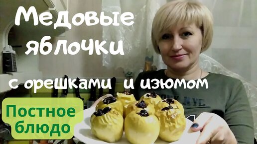 Запечённые медовые яблочки с орехами и изюмом. Постное блюдо.