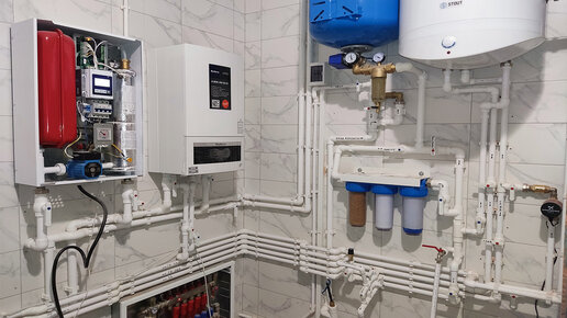 Отопление частного дома газом и электричеством. Настенный бойлер косвенного нагрева с рециркуляцией горячей воды и сливом. Теплые полы.