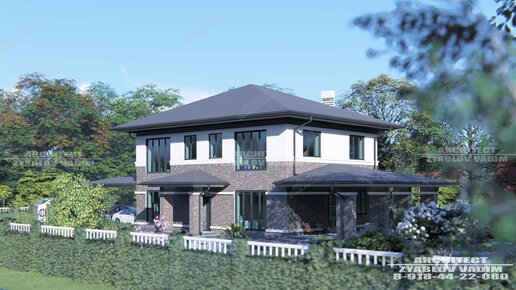 Видосик проекта двухэтажного дома типо Райт 13.5-10,2м - 297м2