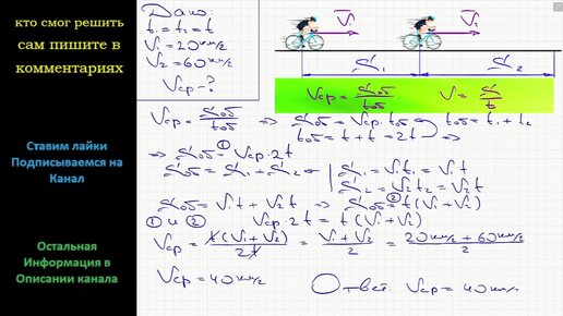 Физика Велосипедист первую половину времени движения ехал со скоростью 20 км/ч, а вторую половину со скоростью 60 км/ч. Определите среднюю