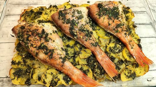 МОРСКОЙ ОКУНЬ запеченный в духовке с картофелем