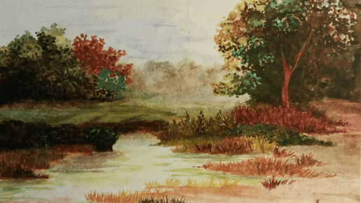 Детские рисунки акварелью. Пейзажи