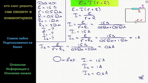 Физика ЭДС элемента Ɛ = 1,5 В, а внутреннее сопротивление r = 0,50 Ом. Какой будет сила тока во внешней цепи, если ее сопротивление равно