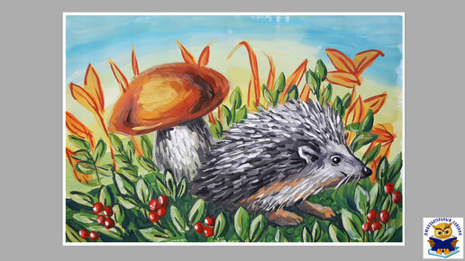 Рисуем симпатичного ежика! Как просто нарисовать ежа. Еж в осеннем лесу. Урок рисования для школьников.