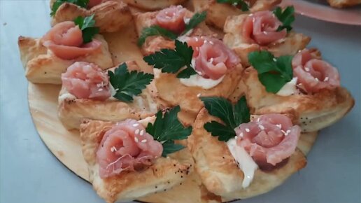 Лучшая праздничная Закуска!Вкусная закуска из слоенного теста с семгой.