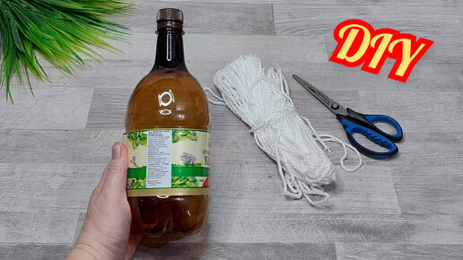 Взяла пластиковую бутылку и бельевой шнур. Показываю, что у меня получилось. Дети в восторге от такого Новогоднего подарка.