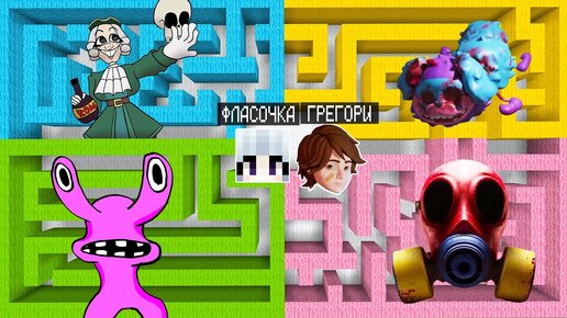 Выбери правильный лабиринт ДОКТОРКА ЛИВСИ МОПС ГУСЕНИЦА РАДУЖНЫЙ ДРУГ ПРОТИВОГАЗ в майнкрафт!