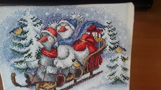 "На саночках"/Готовая и оформленная в прикладную вещь вышивка
